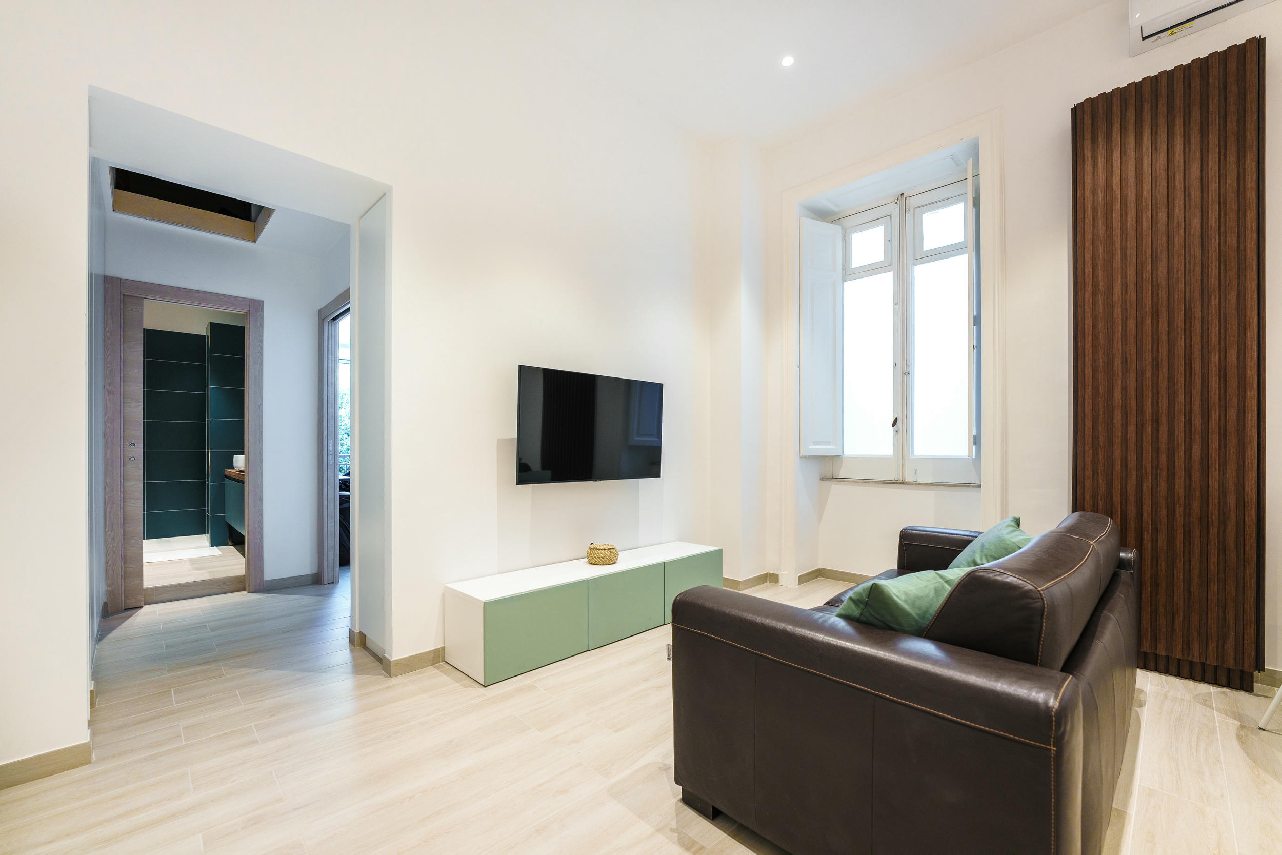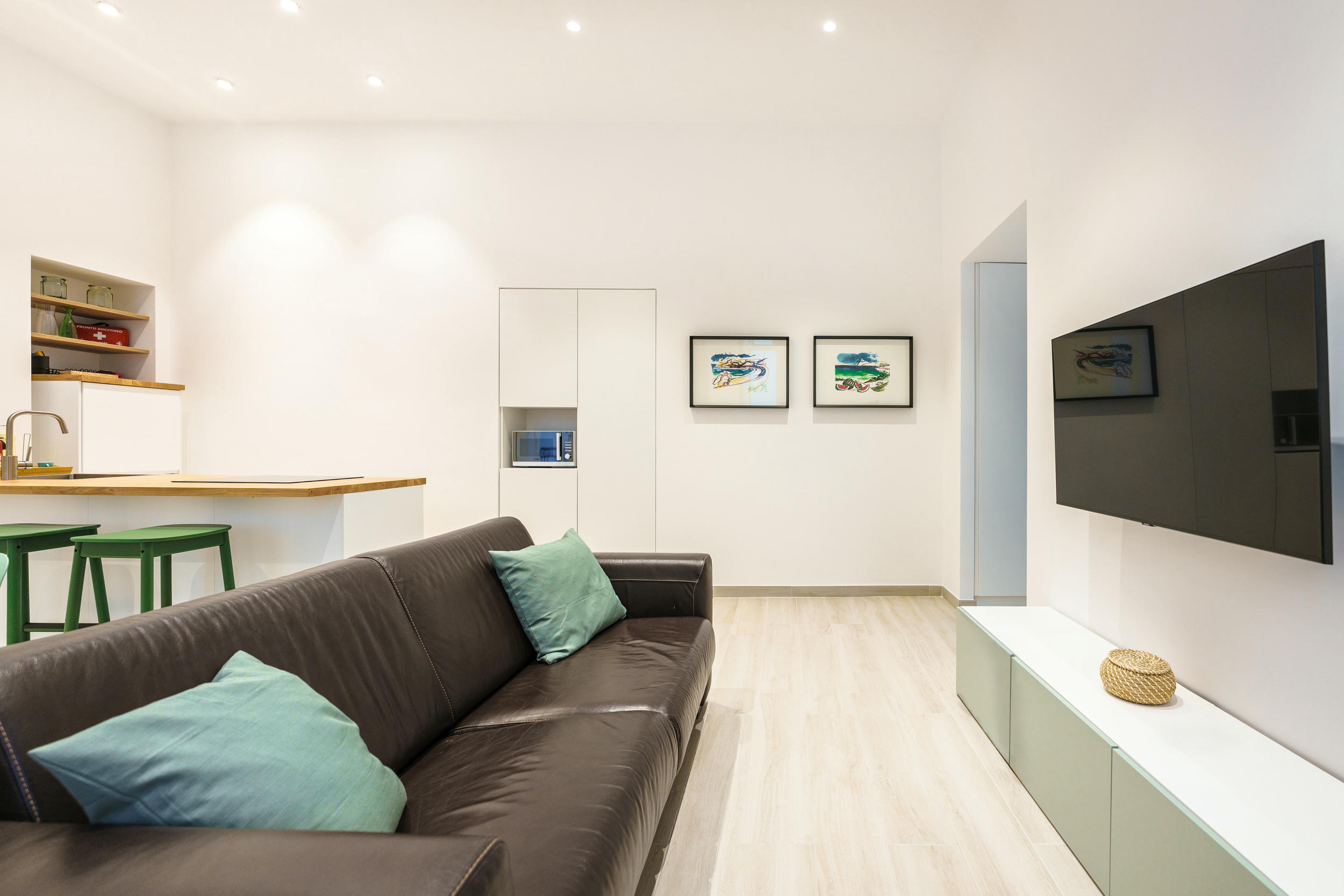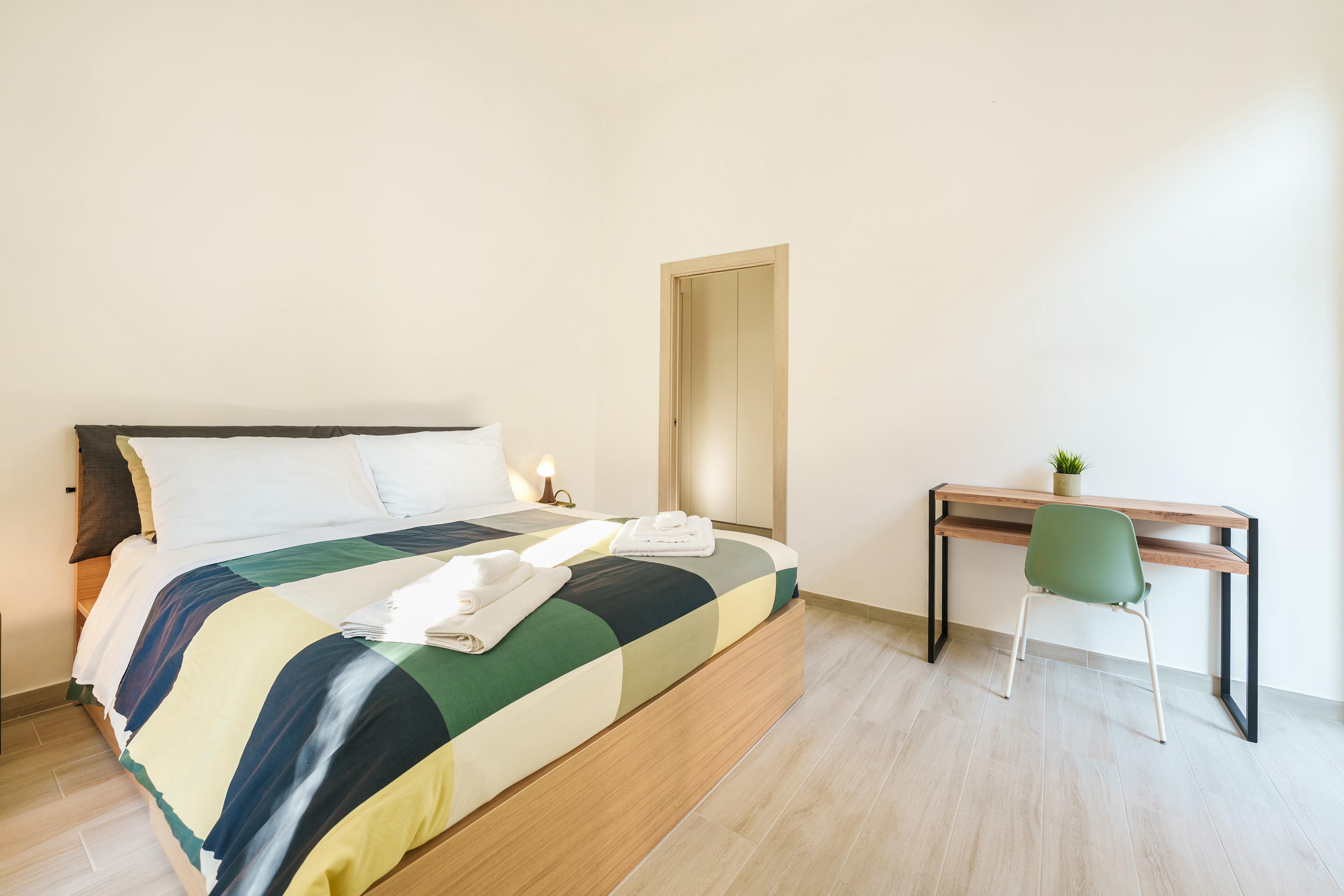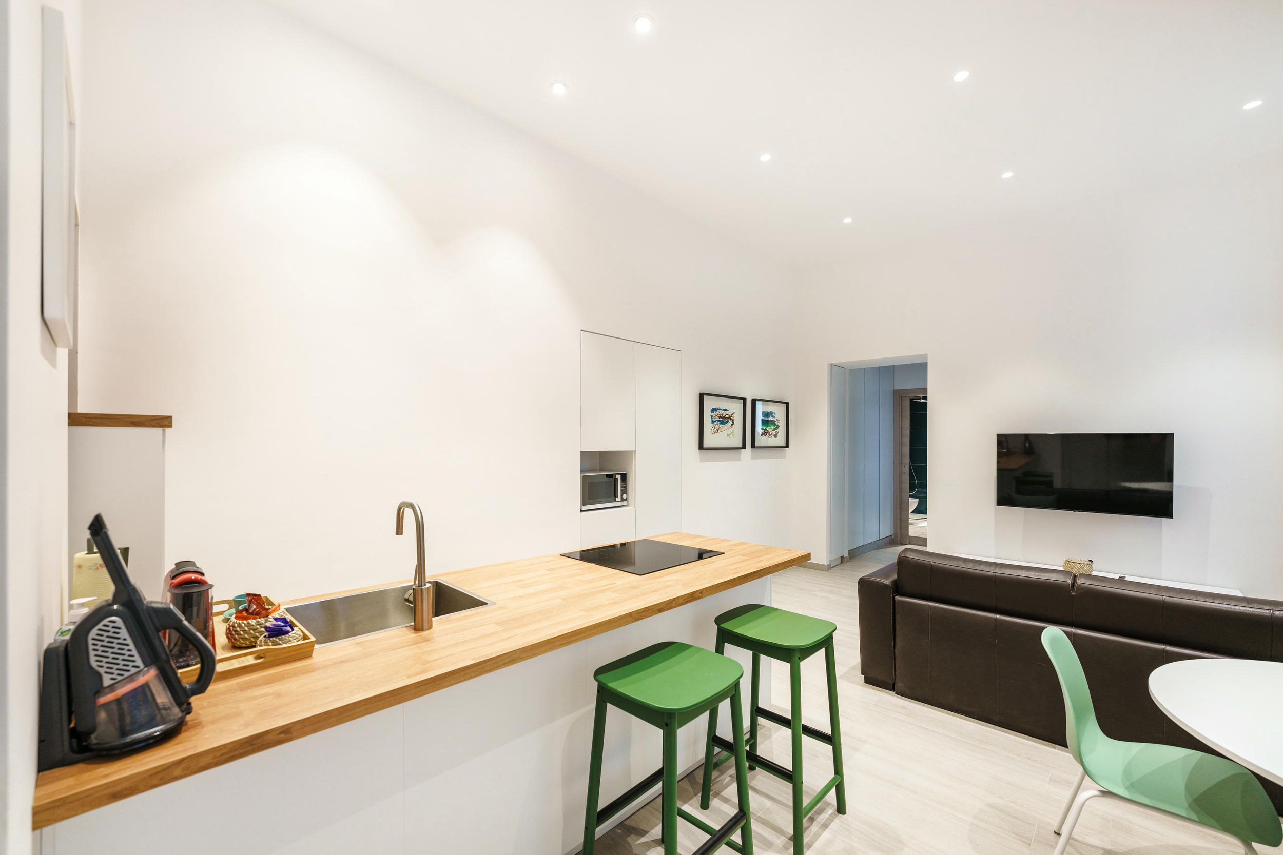 L'appartamento è fornito di un letto matrimoniale (king size), un divano letto, frigo, TV LED, Wi-Fi, macchina Nespresso. Il bagno è equipaggiato con doccia, asciugacapelli, prodotti di cortesia; inoltre, sono inclusi Netflix e ferro da stiro.