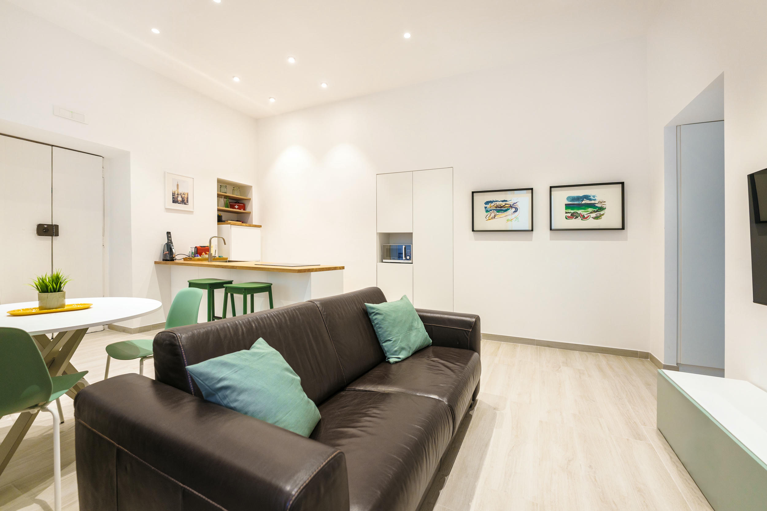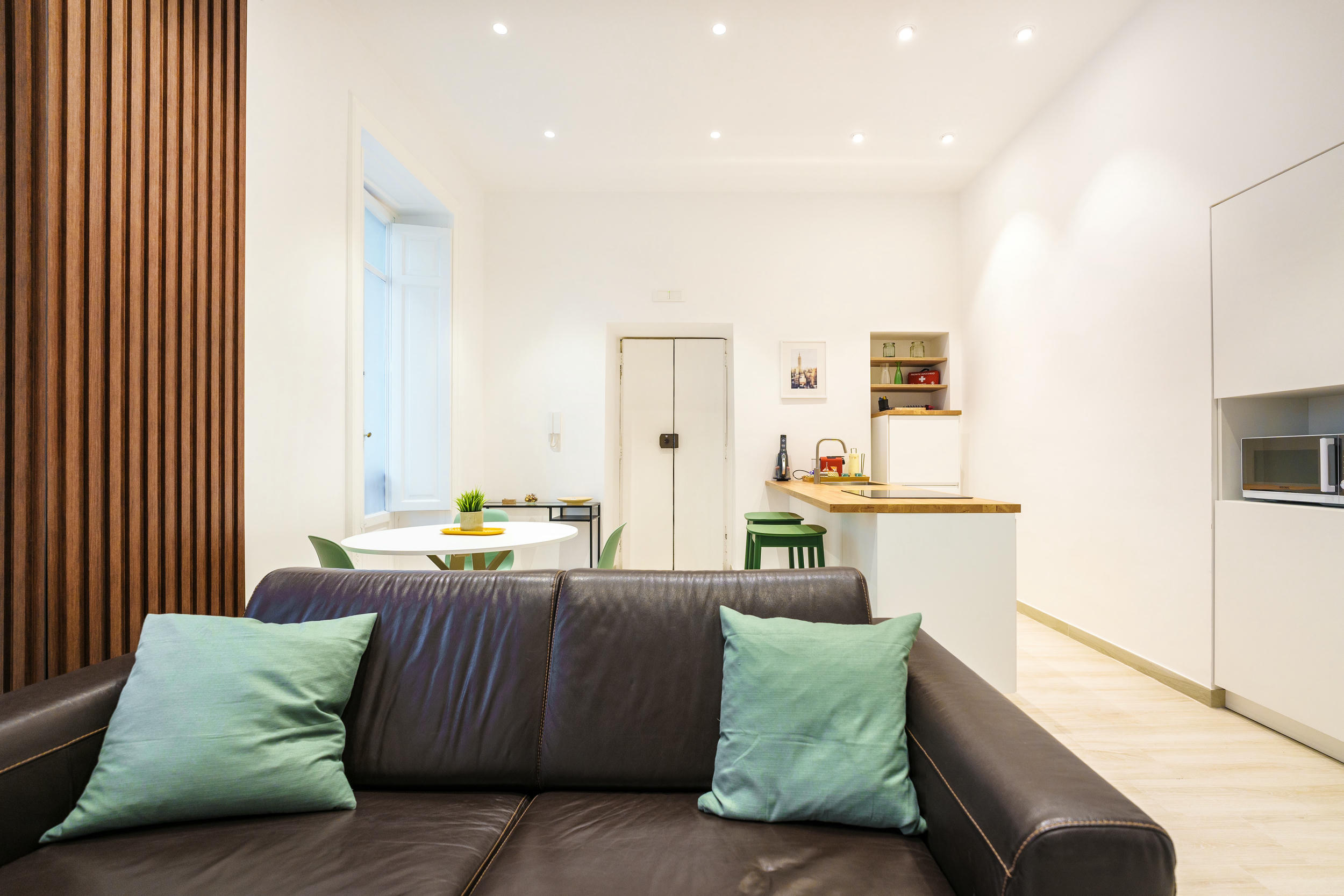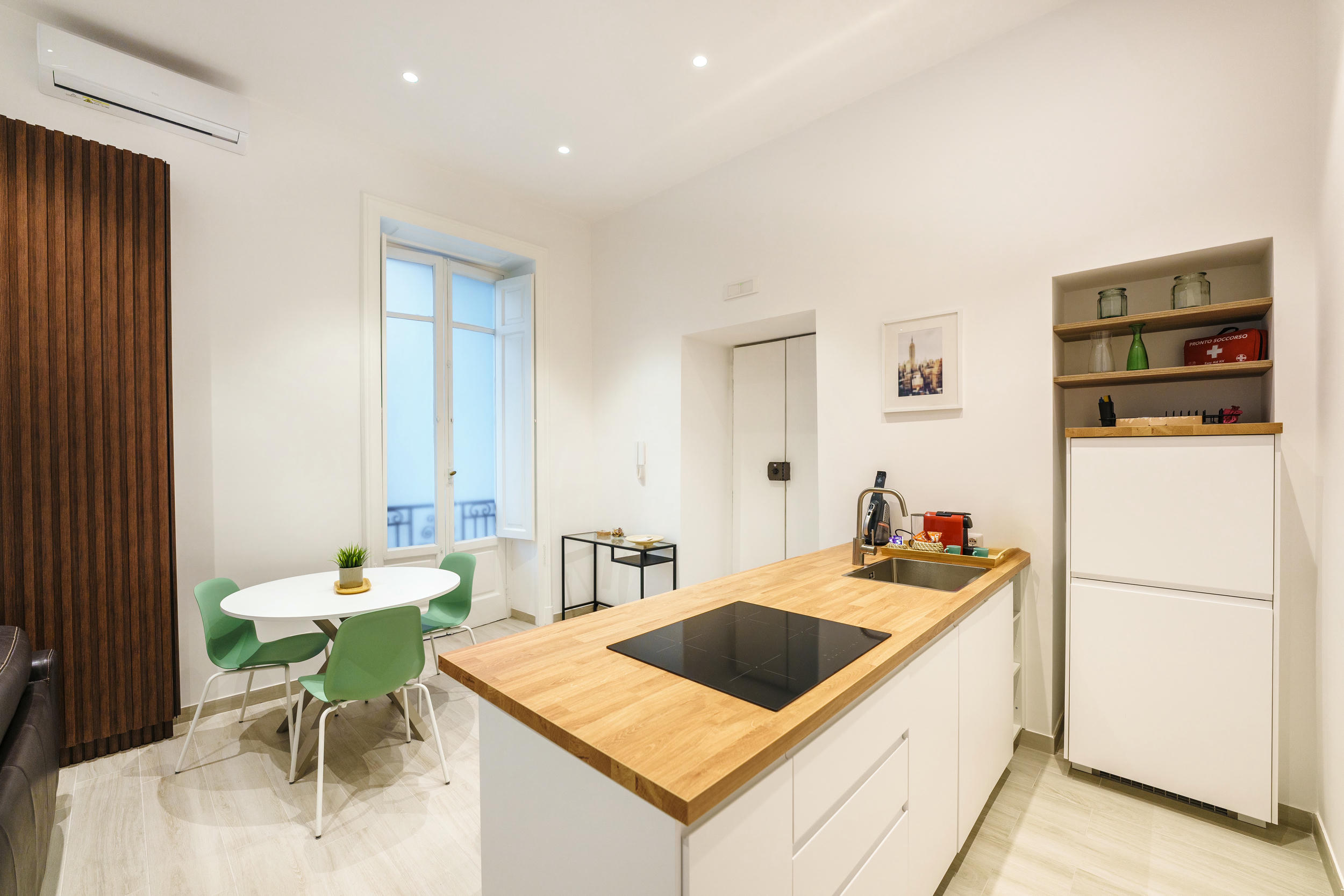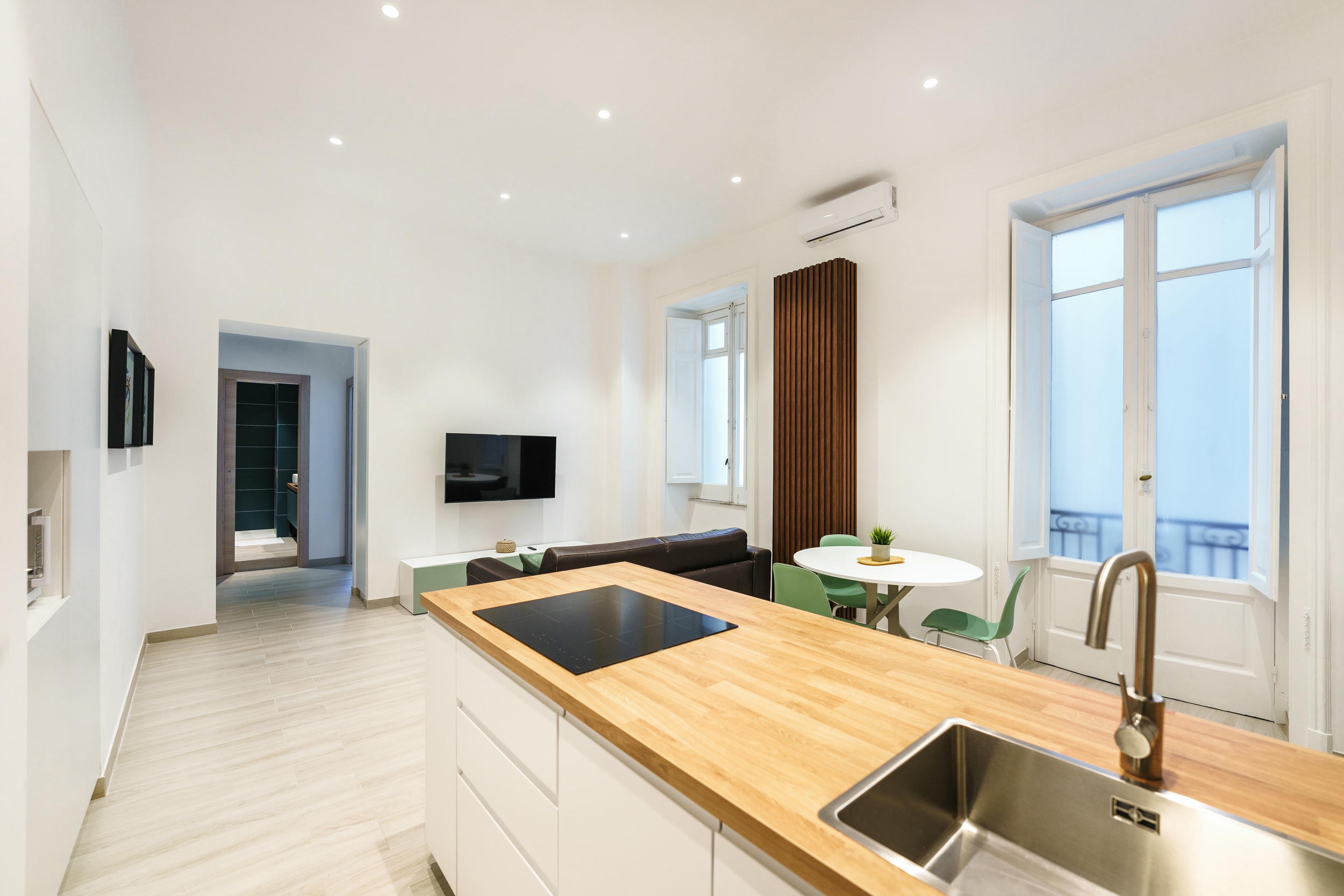 L'appartamento è fornito di un letto matrimoniale (king size), un divano letto, frigo, TV LED, Wi-Fi, macchina Nespresso. Il bagno è equipaggiato con doccia, asciugacapelli, prodotti di cortesia; inoltre, sono inclusi Netflix e ferro da stiro.